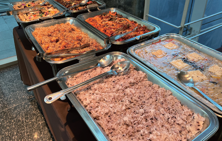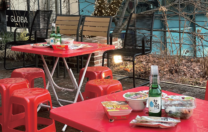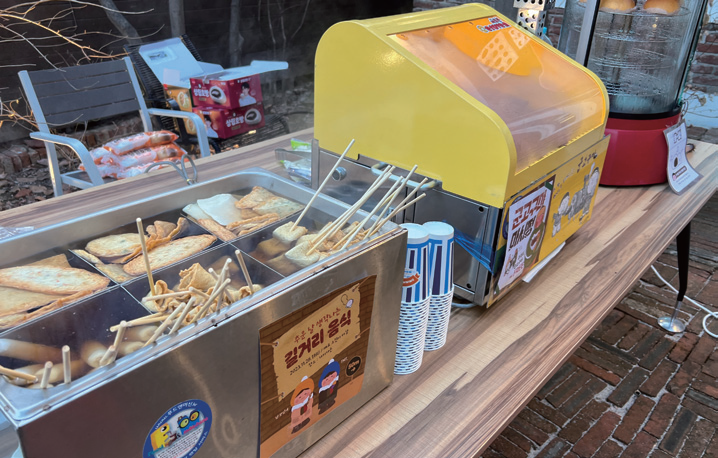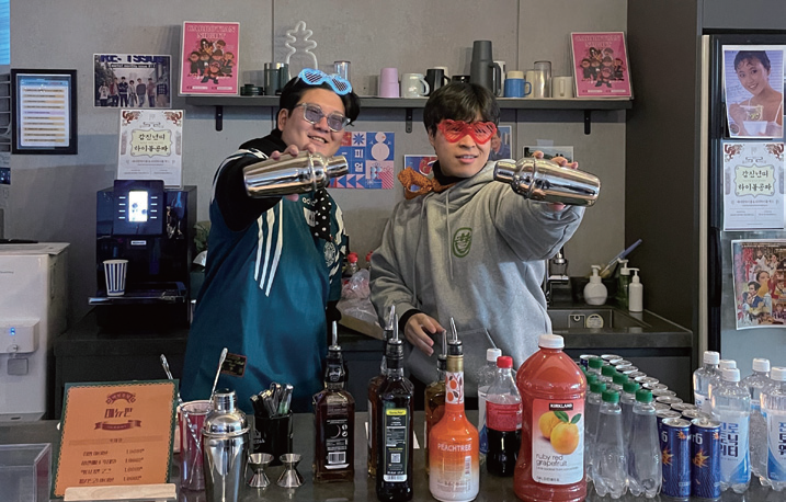 그럼 본격적으로 다양한 프로그램이 준비되어 있는 한남캠퍼스를 둘러볼까요? 로비에는 뷔페와 포토월 앞 인생네컷 부스가 설치되었습니다. 작년에 식사가 부족했던지라 이번에는 뷔페라는 성대한 만찬을 즐길 수 있어서 만족도가 최상이었습니다. 더불어 히트다! 히트! 파티에 인생네컷이 빠질 수 없죠~ 다같이 모여 23년도의 마지막 추억을 남길 수 있었습니다. 이에 더해 달콤한 핑거푸드와 무제한 칵테일바가 준비되어 있어 파티 분위기를 더욱 고취시킬 수 있었습니다.