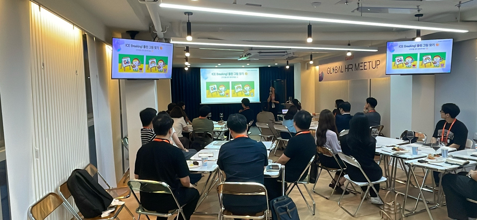 많은 Global HR 담당자 분들이 서로 인사하며 즐겁게 아이스 브레이킹 시간에 참여해 주셨습니다. 😄