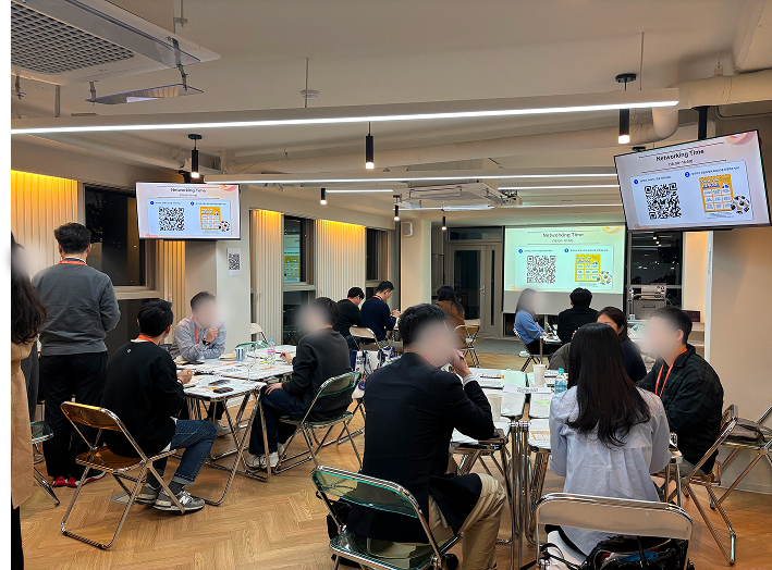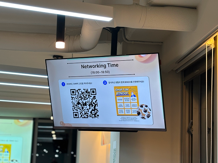 참석자분들은 케이터링과 음료를 즐기며 자연스럽게 대화를 나누었고, 처음 만나는 담당자들 간의 어색함을 풀기 위해 Small Talk 빙고 액티비티도 진행되었습니다. 빙고를 완성한 참가자에게는 트렌디한 디저트 '두쫀쿠’를 선물로 증정하며, 화기애애한 분위기 속에서 행사의 문을 열었습니다.