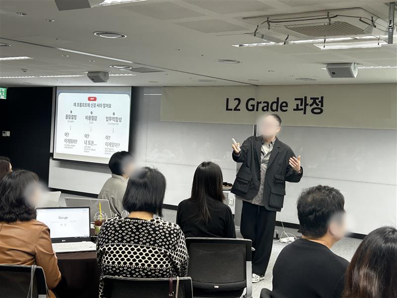 둘째는 현업 적용 가능성이었습니다. 배운 것을 돌아가서 실제로 써봤으면 좋겠다는 바람이 강했는데, 전국 각지의 다양한 직무 담당자들이 함께 교육을 받는 만큼, 모두가 자기 현장에 맞게 적용할 수 있어야 한다는 실질적인 필요였습니다. 또한, 돌아가서 다른 팀원들에게 알려줘서 확산될 수 있는 교육이길 바라셨습니다.