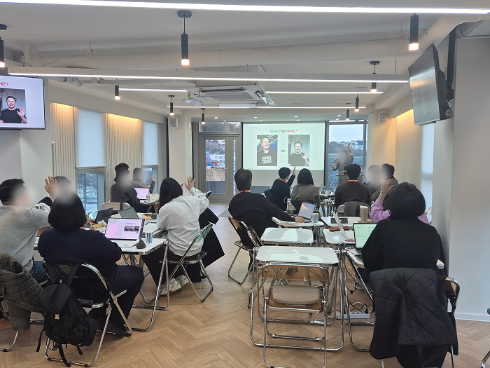 본격적인 실습에 앞서, 참여자들과 함께 AI가 생성한 이미지와 실제 사진을 구분해보는 간단한 퀴즈를 진행했습니다. 이제는 육안으로 구분하기 어려울 만큼 정교해진 결과물을 보며, 참가자들은 단순히 “신기하다”를 넘어 한 가지 감각을 공유했습니다.