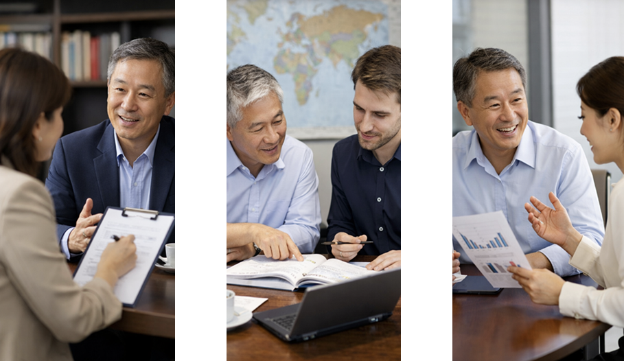 교육 기획 단계에서 고객사가 가장 강조한 사항은 모든 교육이 임원 개개인의 니즈와 학습 목적에 맞게 유연하게 운영되어야 한다는 점이었습니다. 단순히 비즈니스 영어에 국한된 획일적인 교육이 아닌, 임원별 영어 사용 목적에 따라 회화 중심, 실무 중심 등 학습 방향을 자유롭게 설정할 수 있는 구조를 요청하였습니다.