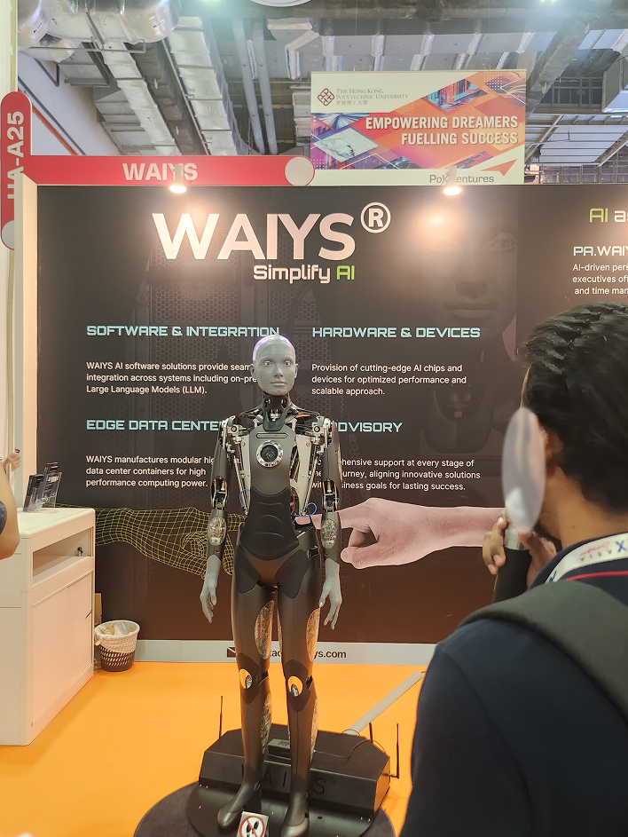 GITEX ASIA는 아시아의 최첨단 기술 전시회입니다. 박람회장에 처음 입장했을 때 WAIYS 부스의 휴머노이드 로봇이 반겨주었습니다. 얼굴 인식이 가능하며, 질문을 하면 답변까지 가능한 로봇으로, 로봇과 대화하는 신기한 경험을 할 수 있었습니다.