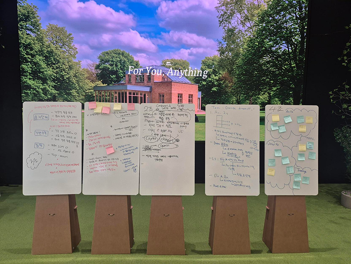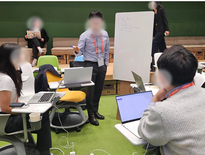 ‘AI 성숙도 체크’ 활동에서 조별로 나눈 내용을 화이트보드에 정리하고, “추천하고 싶은 AI 도구”, “AI를 통해 기대하는 변화” 등 AI에 관해 자유롭게 이야기를 더하여 조별 발표를 이어갔습니다.