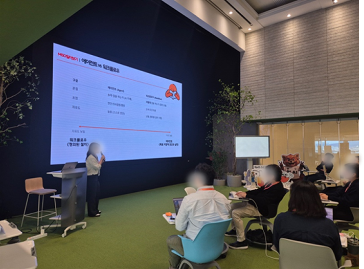 GS는 AI 대전환 시대 속에서 스스로 변화를 만들어가는 조직으로 주목받고 있습니다. 이번 워크숍을 통해 GS가 자체 AI 플랫폼 ‘MISO’를 개발하게 된 배경, ‘해커톤'과 ‘멘토링' 등 전사적으로 AI 활용 문화를 확산시키기 위한 다양한 실험과 도전에 대한 이야기를 직접 들을 수 있었습니다.