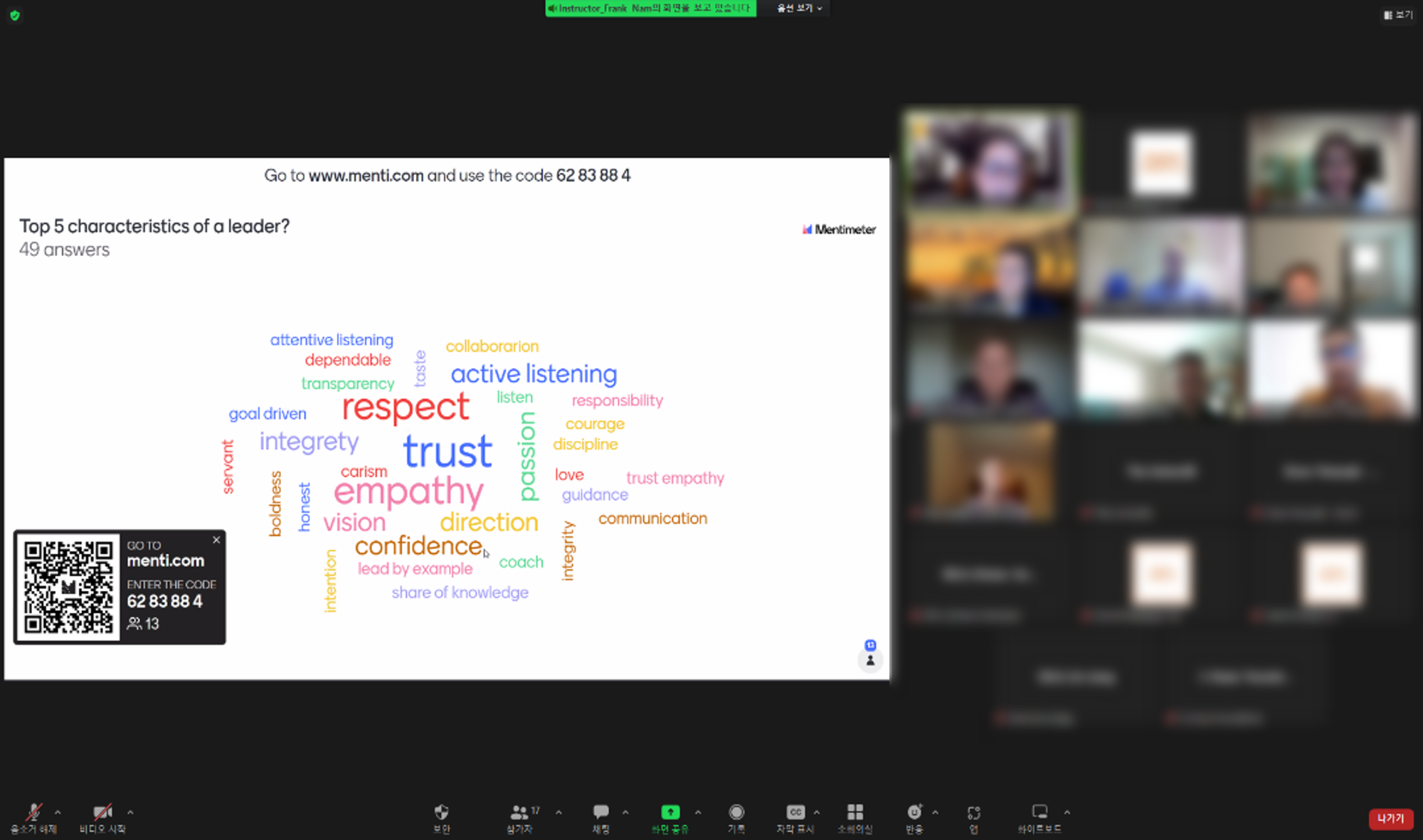 교육생들의 참여도 및 집중도를 높이기 위해 2024년 과정부터는 현지 근무 시간에 맞추어 교육을 진행한 점도 특별하게 Focus를 맞춘 부분입니다. 시차로 인해 새벽 세션을 운영한다는 게 쉽지 않은지라 염려된 부분도 있었지만, 걱정이 무색하게도 교육생분들의 열띤 토론과 적극적으로 참여하는 모습을 보며 교수님도 역으로 힘을 얻으셔서 성공적으로 잘 마무리되었습니다.