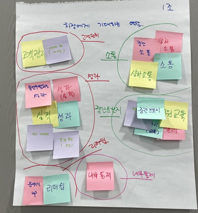 다양한 시뮬레이션을 진행할 때 상사와 후배를 따라하며 웃음을 유발하기도 하고, 최근의 고민들을 시뮬레이션에 녹여내는 등 현장 분위기는 화기애애했습니다. 다만 앞서 언급했듯 D사에서 처음 진행하는 신임 차장 리더십 과정이라, 학습자 피드백이 기대도 되었지만 우리가 의도한대로 학습자 분들이 잘 받아들였을까 하는 걱정도 있었는데요. 이번 과정을 통해 중간 책임자로서의 커뮤니케이션 방법을 학습하고, 또 구체적으로 실습할 수 있어서 좋았다는 피드백이 있었습니다. 사내 다양한 구성원과 소통 시 가져야할 마인드를 배울 수 있었다는 코멘트도 기억이 나네요. 중간 관리자로서의 역할과 책임을 생각해볼 수 있는 좋은 계기가 되었다는 의견도 주셔서, 저희가 기획한 대로 잘 따라오셨다는 뿌듯함을 느낄 수 있었습니다.