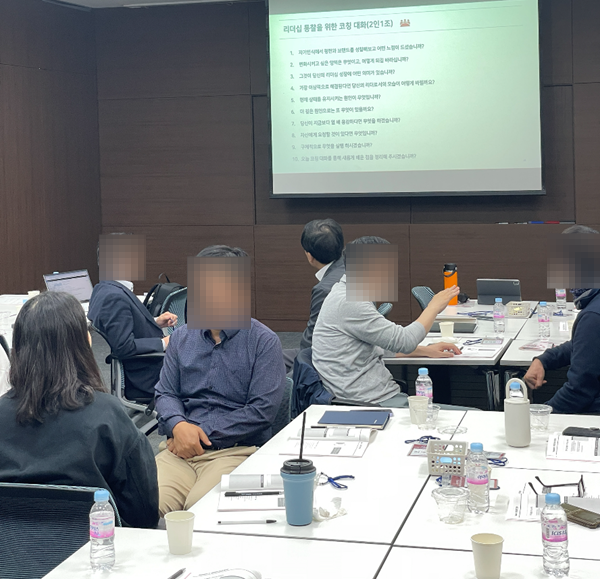오후 모듈에서는 자기 인식에서 파악된 각자의 리더십 스타일을 활용해 실질적인 소통과 코칭 기술을 배양하는 데 중점을 두었습니다. 이를 통해 리더들이 조직 내에서 팀원들과의 소통 방식이나 갈등 해결에 있어 본인의 리더십이 어떻게 작용하는지 실전에서 느낄 수 있도록 준비했습니다.