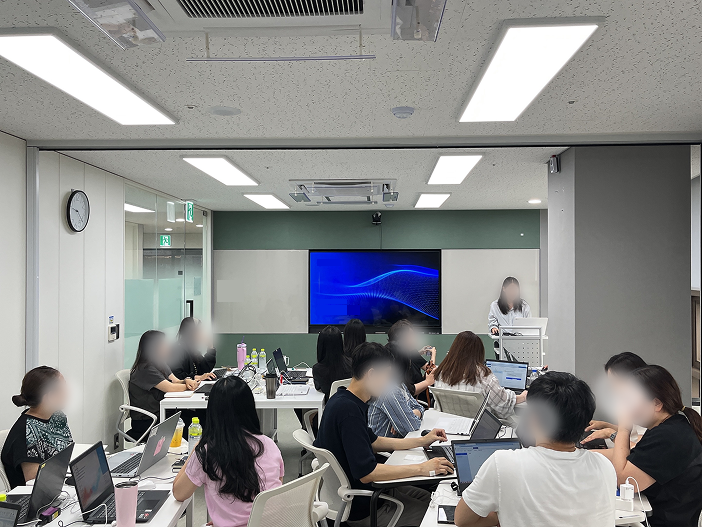 첫째 날에는 AI 기술과 트렌드 이해 및 자체 AI 시스템 사용법 학습에 초점을 맞췄습니다. 참가자들은 AI가 만들어내는 사회적∙산업적 변화 흐름을 학습하고, G사가 자체 구축한 AI 시스템의 기능과 활용 방법을 체계적으로 학습했습니다. 이를 통해 AI가 단순한 미래 기술이 아닌, 곧바로 업무 혁신에 적용할 수 있는 도구임을 인식할 수 있었습니다.