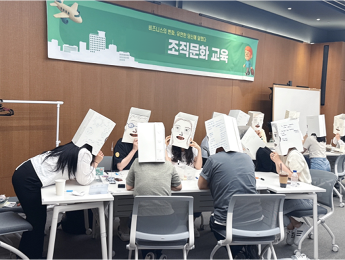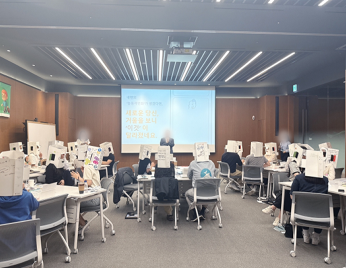 참가자들은 “내 모습을 되돌아보는 의미 있는 시간이었다.”, “생각과 감정을 정리해 보는 계기가 되었다”라는 등 자기 성찰의 기회로서 교육을 긍정적으로 평가했습니다. 타 부서 직원들과 함께 조를 이루며 나눴던 교류 경험에 대해서도 “같은 고민을 공유하며 진심을 나눌 수 있었다”라는 반응이 있었고, “듣기만 하는 강의가 아니라 직접 쓰고 표현할 수 있어 신선했다”라는 체험형 구성에 대한 만족도 역시 높았습니다.