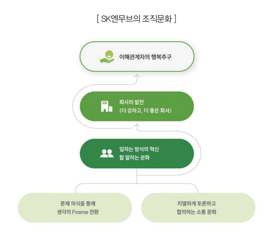 저는 SK엔무브 기업문화Unit팀에서 HRD와 채용, 글로벌 HR업무를 맡고 있습니다. SK엔무브 같은 경우에는 직원 수가 300명대로 규모가 크지 않습니다. 그래서 직원 한명 한명의 역할과 역량이 중요하고, 직원들을 핵심 인재로 육성시켜야 하는 회사입니다. 따라서 HRD 담당자로서 우리 구성원들이 무엇을 필요로 하는지 잘 파악하고 적재적소에 맞는 교육을 기획, 진행 해주면서 보람을 느끼고 있습니다. 앞으로도 담당 업무를 해나가면서 SK엔무브와 함께 성장하고 싶습니다.