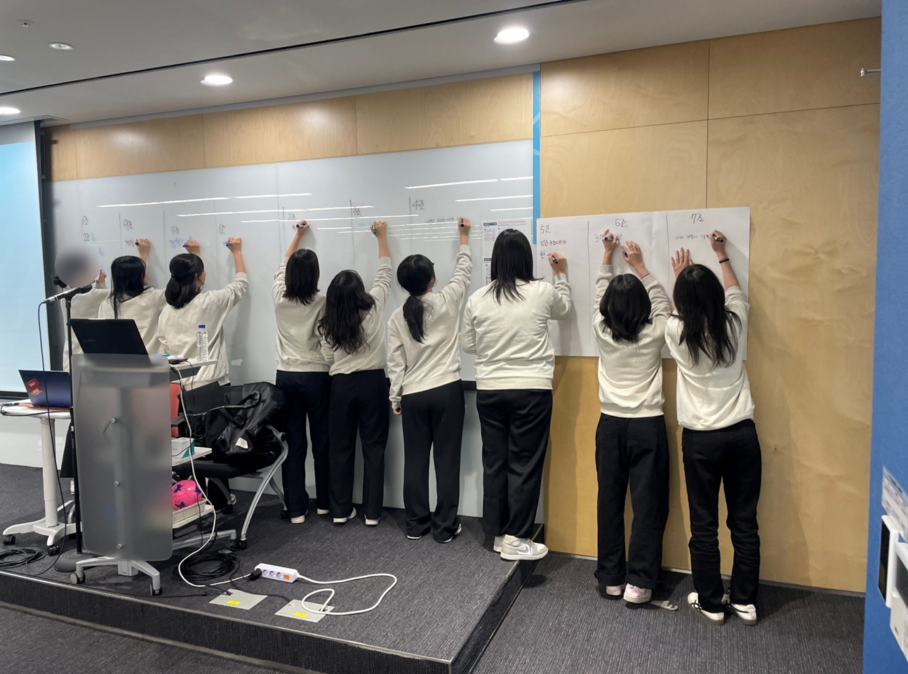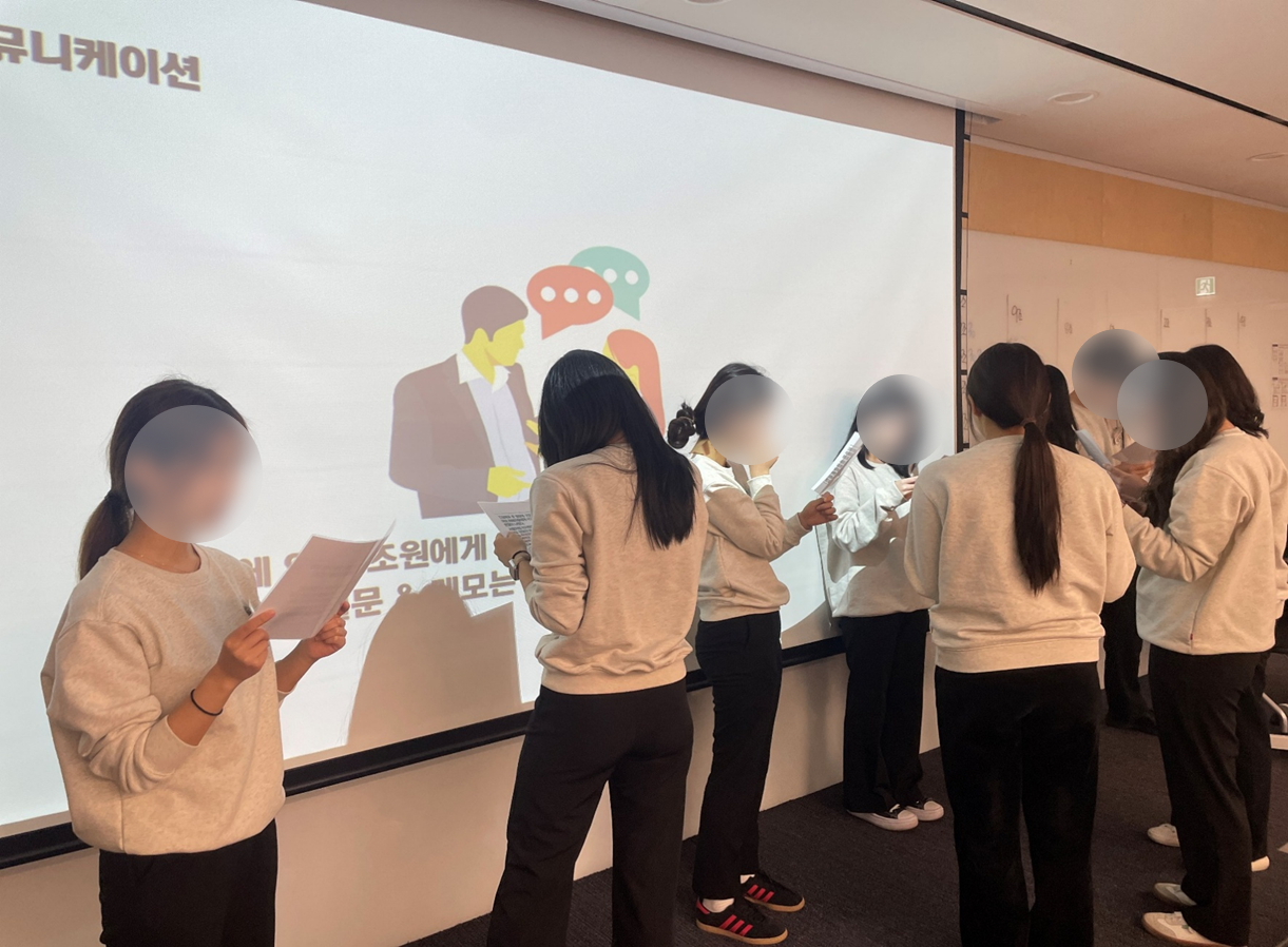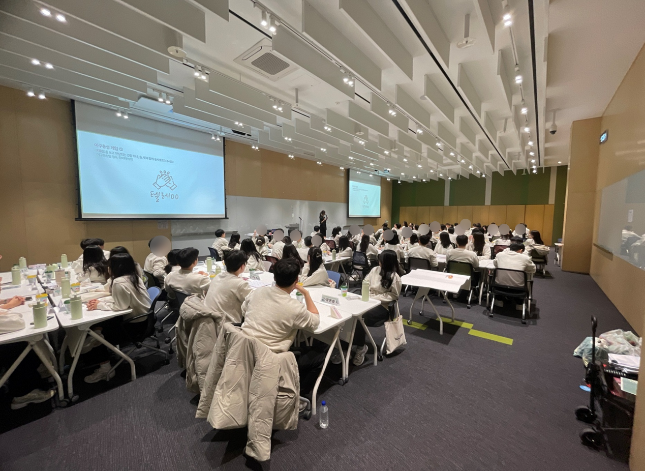 특히, 한 반에 100명 정도 되는 교육생들이 액티비티와 게임 등을 통해 한 명도 빠짐없이 몰입도 있게 교육에 참여했는데요. 큰 강의장을 100명의 교육 열기로 꽉 채우니 참으로 인상 깊었습니다. 만족도 또한 5점 만점에 5점이 나왔고 마지막 시간의 액티비티에서 벌써 직장인 같은 자세와 태도로 회의록 작성과 회의를 주재하는 학습자들의 모습을 보며, 조직에 성공적으로 적응할 수 있을 것 같고 교육생들 스스로 할 수 있다는 자신감이 눈에 깃들어 보여 제 개인적으로 참 뿌듯한 교육이었습니다.