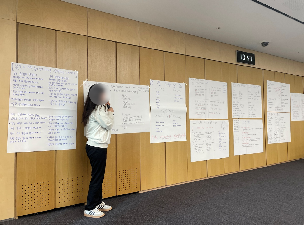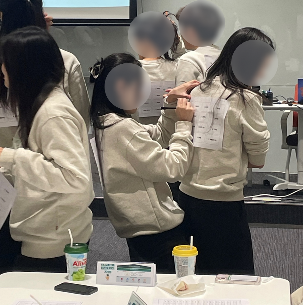 앞선 질문에서 특성화고 인원의 경우 리마인드 차원에서 교육 커리큘럼을 설계하였다고 말씀드렸는데요. 그 이유는 고객사에서 요청이 마인드셋 교육을 심화할 수 있는 과정으로 요청하셨으나, 4개월 전에 교육을 들었다는 점과 교육 이후 3주간의 인턴십 생활이 끝나고, 다시 학교생활을 했다는 점에서 기존의 교육이 발판이 되었다기보다는 휘발되었을 가능성이 높다고 생각되었습니다. 따라서, 기존 교육을 심화하는 방향보다는 다시 한번 기억을 떠올리며 그때 우리가 무엇을 배웠고 무엇이 중요했는지 그리고 앞으로 우리가 실제 직장에 들어가서 가져야 할 책임과 역할에 대해 다시 주지시키는 차원으로 다가가 학습자의 시선으로 접근하기 위해 노력하였습니다.