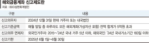국세청에 따르면, 거주자 또는 내국법인이 보유한 해외금융계좌의 월말 잔액 합계가 5억 원을 초과한 날이 한 달이라도 있다면, 반드시 다음 해 6월 30일까지 신고해야 합니다.
