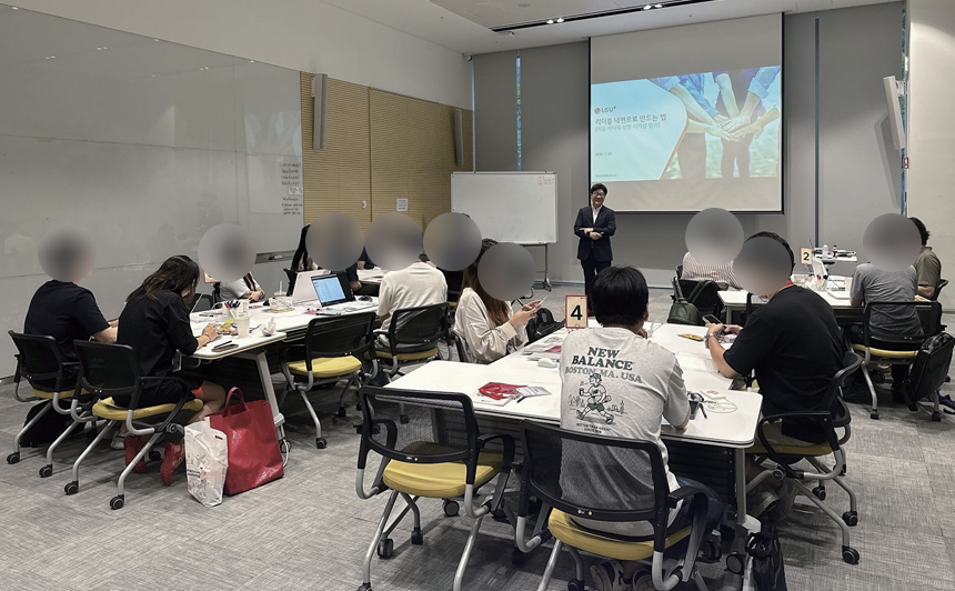해당 과정의 특장점은 기존 강의형 교육과 달리 맞춤형 사례 실습을 통해 참가자들의 몰입도와 참여도를 높였다는 점입니다. 실제 현업에서 겪는 고민과 어려움을 주제로 개념을 학습하고, 이를 해결해 보는 실습 활동과 동료 간의 상호 교류를 통해 실질적인 도움이 될 수 있도록 설계되었습니다. 그 결과, 두 과정 모두 L사에서 실시한 교육 만족도에서 최고 수준(10점 만점에 약 9.5점)을 기록했으며, 참가자들로부터 실제 업무에 적용할 수 있을 만큼 흥미롭고 몰입감 높은 과정이라는 긍정적인 평가를 받았습니다.