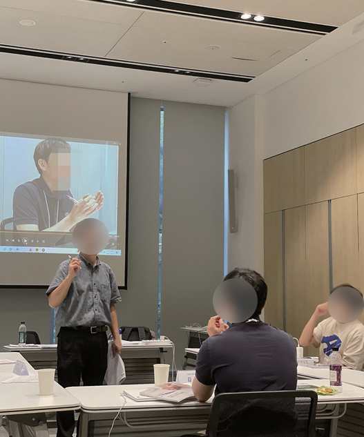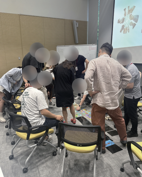 첫 번째 과정에서 기억에 남는 에피소드는 Ice Breaking 시간에 진행된 카드 순서 맞추기 활동입니다. 해당 활동은 모든 참가자가 앞에 나와 동그랗게 앉은 후, 각자 두 장의 카드를 가지고 대화를 통해 순서를 맞추는 방식으로 진행되었습니다. 과정 초반에는 참가자들이 노트북을 만지거나 전화를 받는 등 업무에서 완전히 벗어나지 못하는 모습이었지만, 강사님의 요청에 따라 모두 앞으로 나와 협업을 시작하면서 점차 소통하며 30개에 가까운 그림의 순서를 맞추는 데 성공했습니다. 이 활동 이후, 참가자들은 강의에 더욱 몰입하였고, Case 실습 시간에는 실제 업무에서 겪었던 유사한 사례를 공유하며 공감과 집중을 보였습니다.