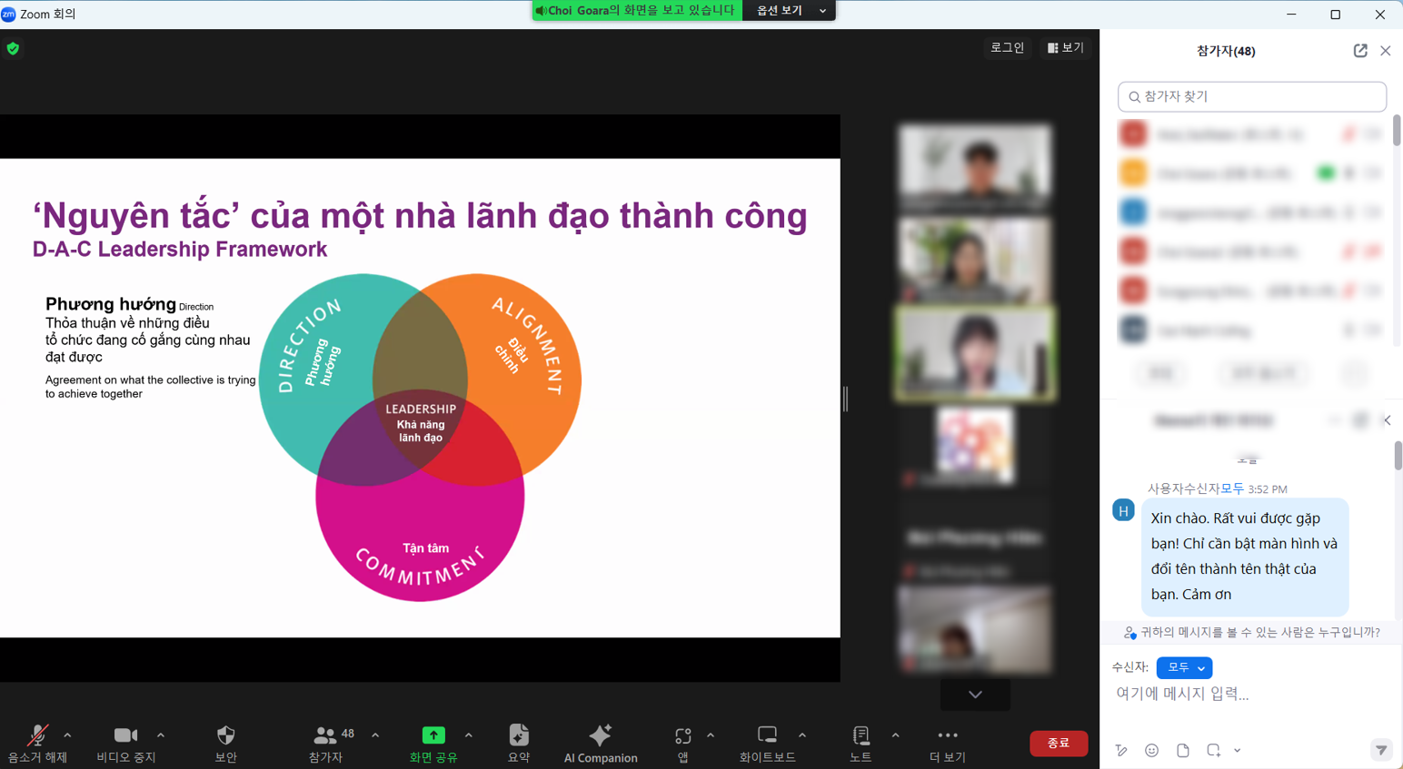 무엇보다 다른 프로그램과 차별화된 부분은 바로 각 국가별 언어로 맞춤화된 글로벌 리더십 과정이라는 점 같습니다. 그리고 비대면 1시간이라는 제한된 상황에서 현채인 리더분들께 잘 전달되어 소통되었던 부분은 바로 소그룹 Acitivity인 것 같아요.